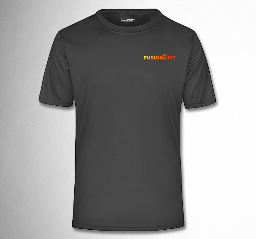 Dieses atmungsaktive unisex T-Shirt (JN358) wird mit dem Fusion2Life Logo auf der Brust sowie einem Spruch auf dem Rücken bedruckt. Einen passenden Spruch könnt ihr auswählen. Zudem habt ihr die Option, auf der rechten Brustseite einen QR-Code zu platzieren. Das Shirt ist für Frauen sowie für Männer. Das Logo bzw. der Spruch hat eine Breite von ca. 10 cm im Brust- und ca. 30 cm im Rückenbereich.